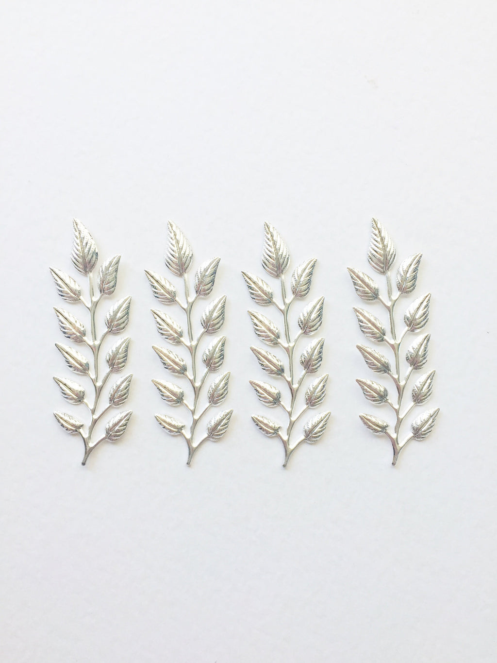 4 x Silver Laurel Leaf Stamping Leaf Embellishments