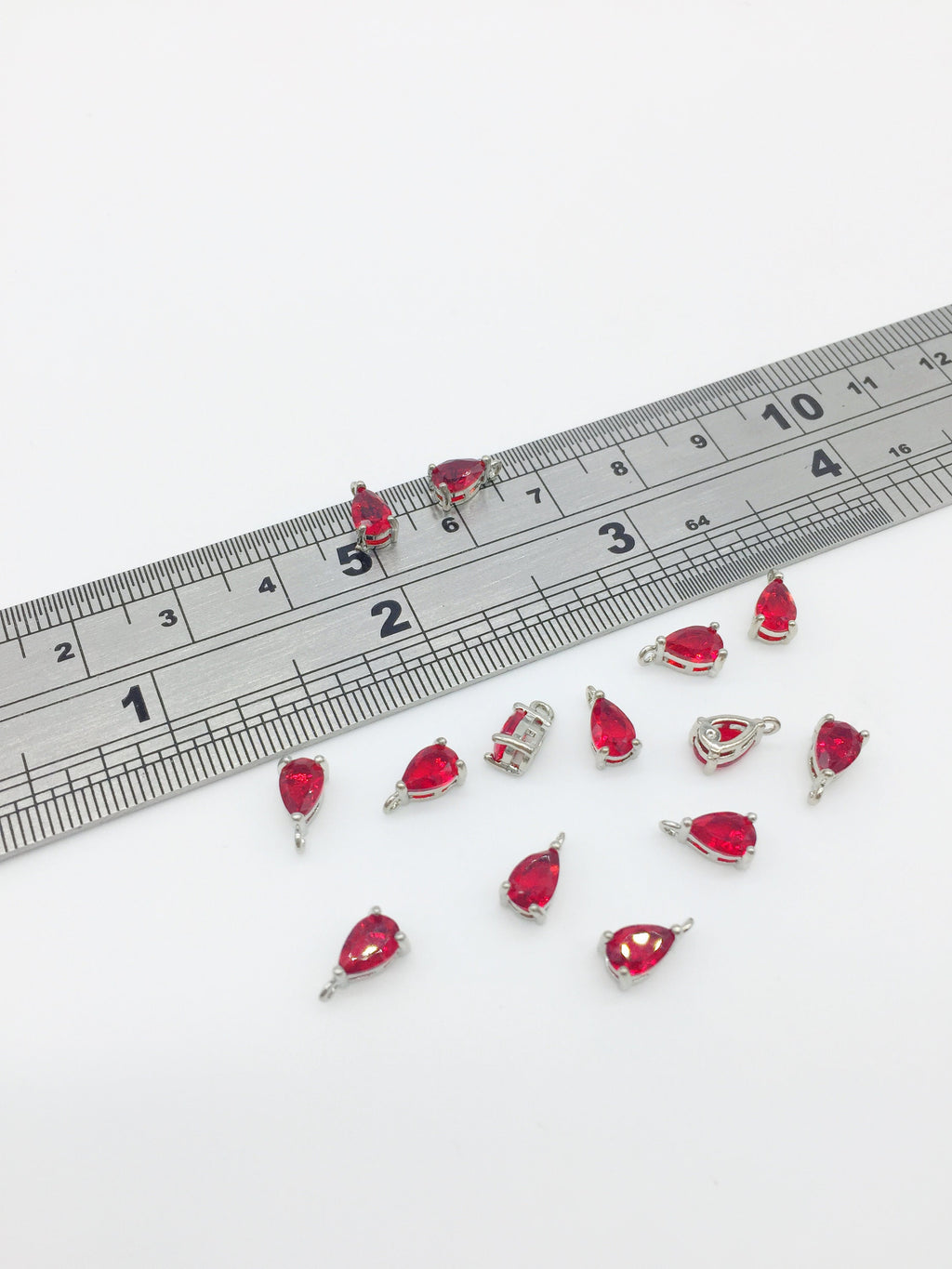 ✨Red pear cut cubic zirconia charms, rhodium plated brass