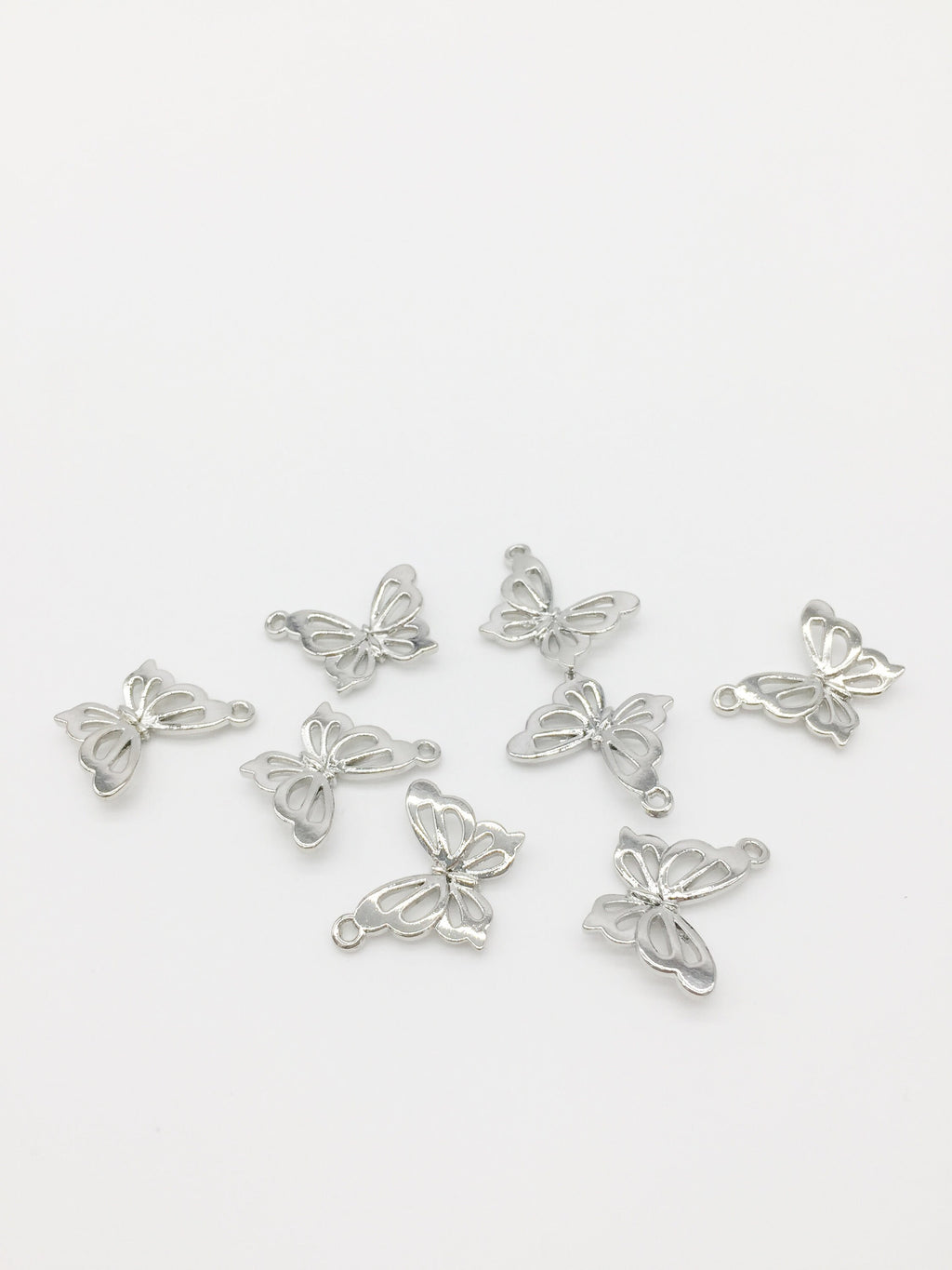 6 x Rhodium Plated Butterfly Pendants, 19x15mm (1392)