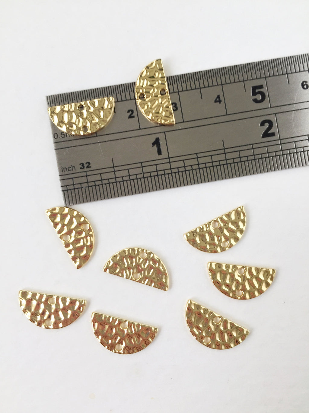 8 x Semi Circle Hammered Gold Connectors, 16x8mm (0033)
