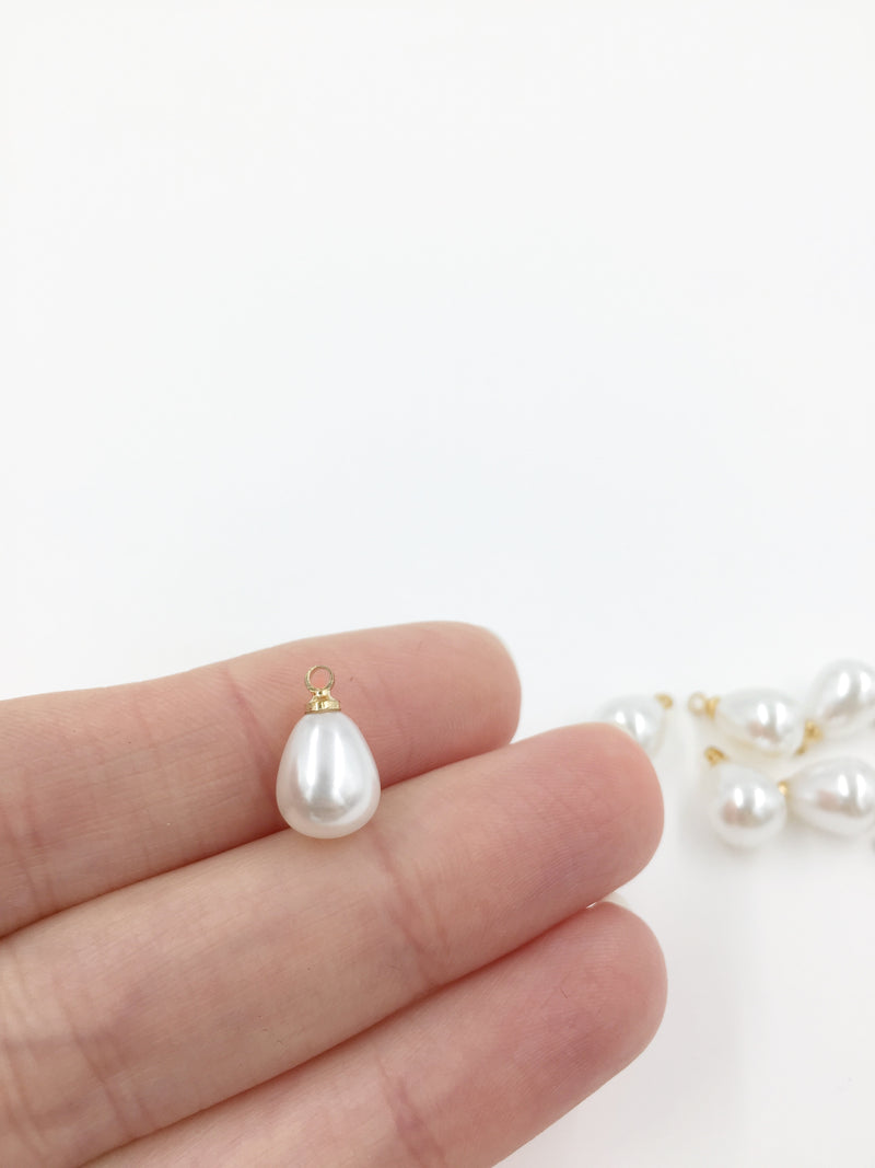 ✨ Acrylic pearl charms with yellow gold tone loops, white pearl