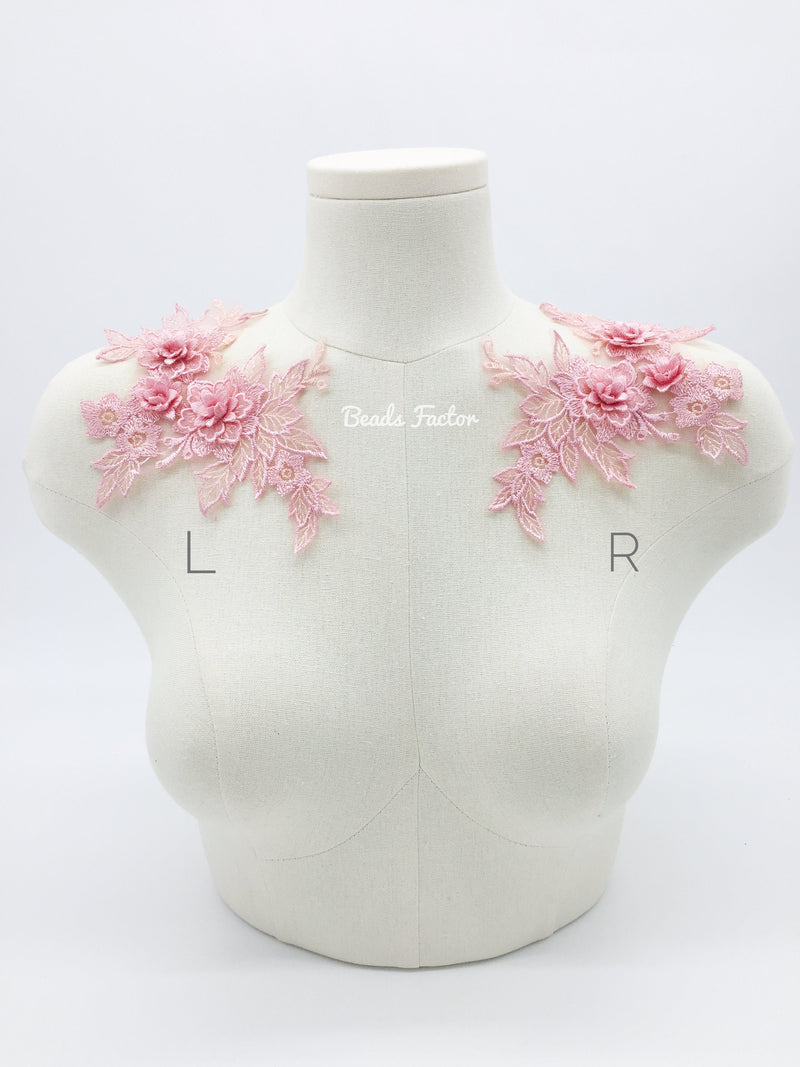 Pink Embroidery Lace Patch, 3D Flower Lace Applique