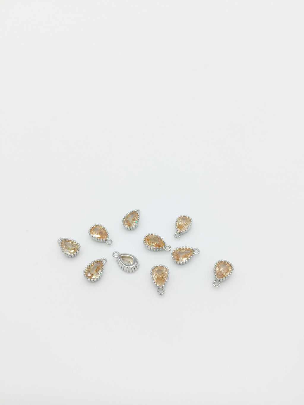 Rhodium plated cubic zirconia teardrop charm, citrine colour
