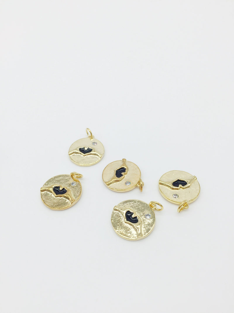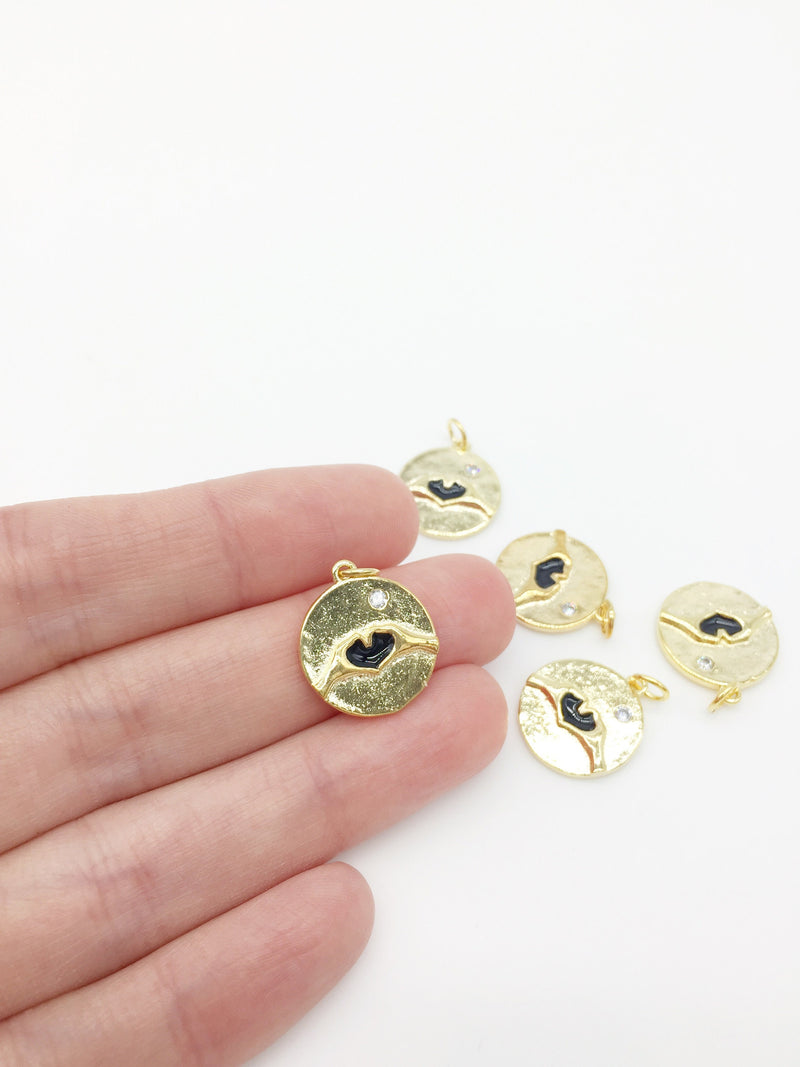 ✨18K gold plated heart hand gesture charms with cubic zirconia and black enamel, supplied with a jump ring