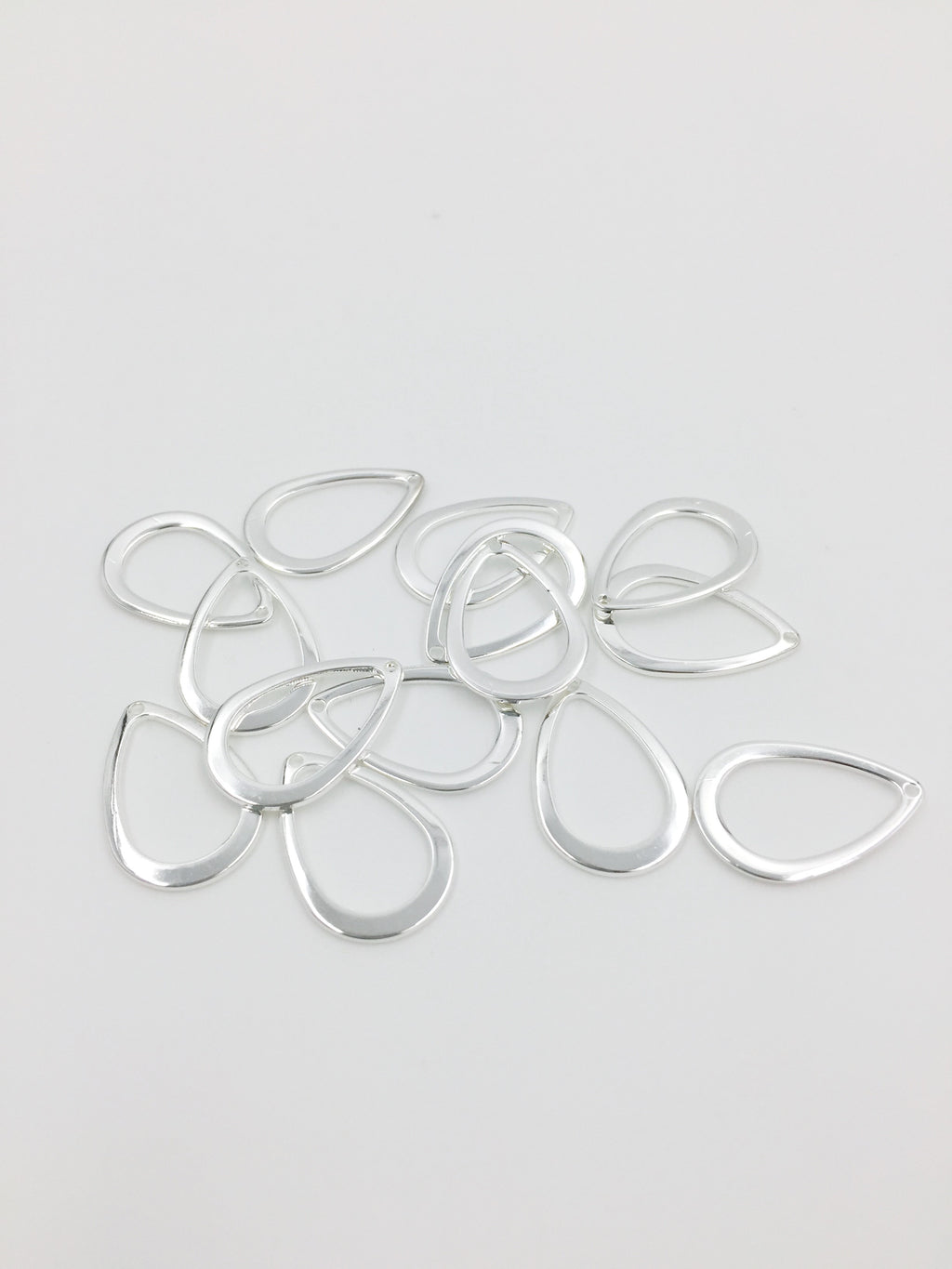 10 x 915 Sterling Silver Plated Stainless Steel Teardrop Charms, 17x11.5mm (0041)