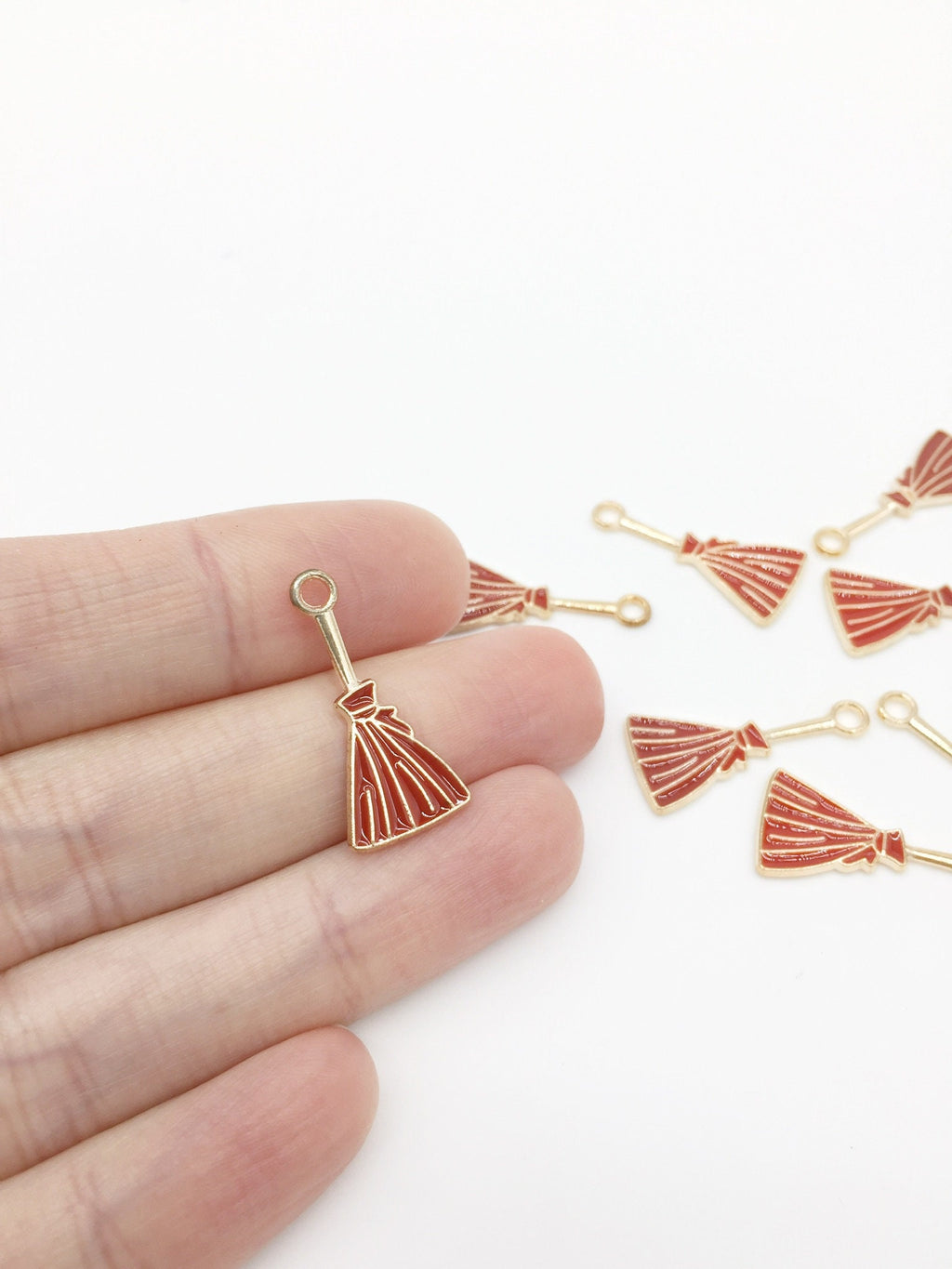 10 x Enamel Broom Charms, 24x11mm Halloween Witches Broom Pendants (2843)
