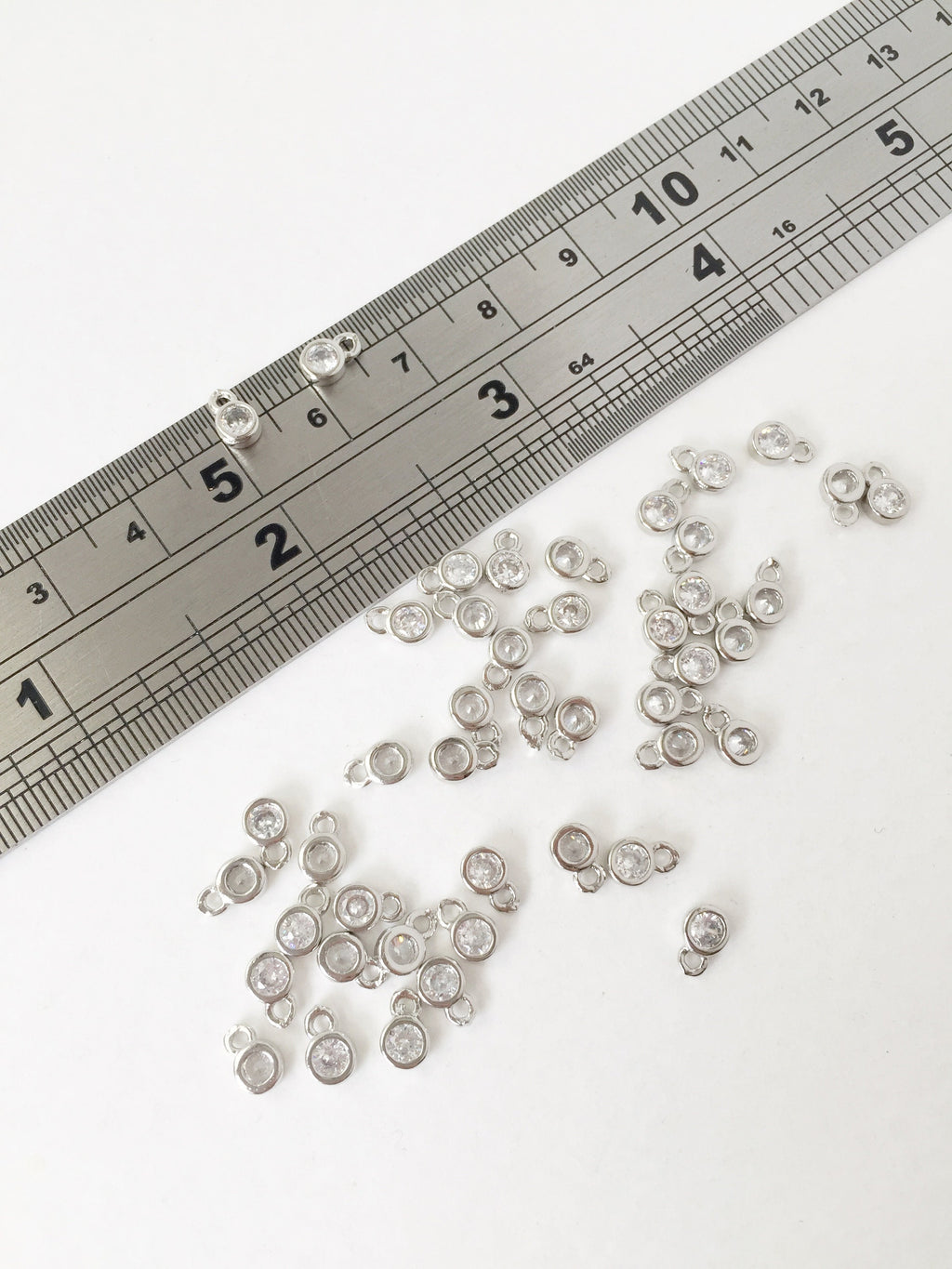 10 x Tiny Cubic Zirconia Platinum Charms, 6x4mm (1572)