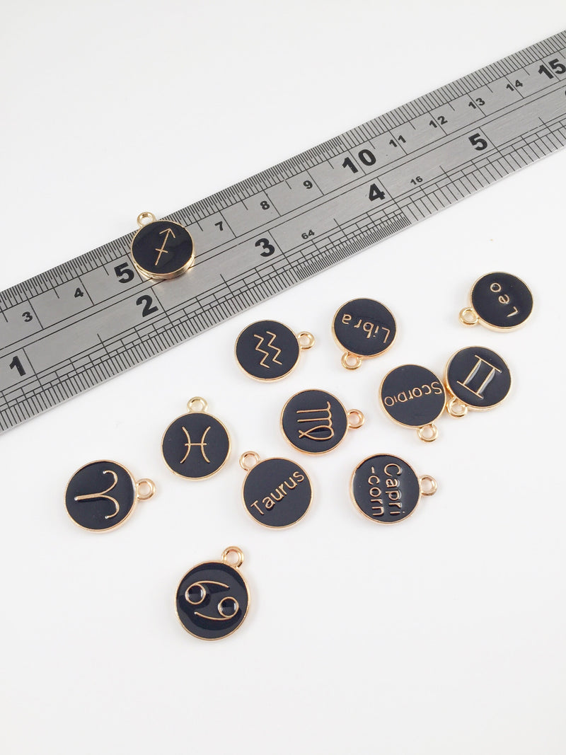 12 x Black Enamel Constellation Charms, 15x12mm (1849)