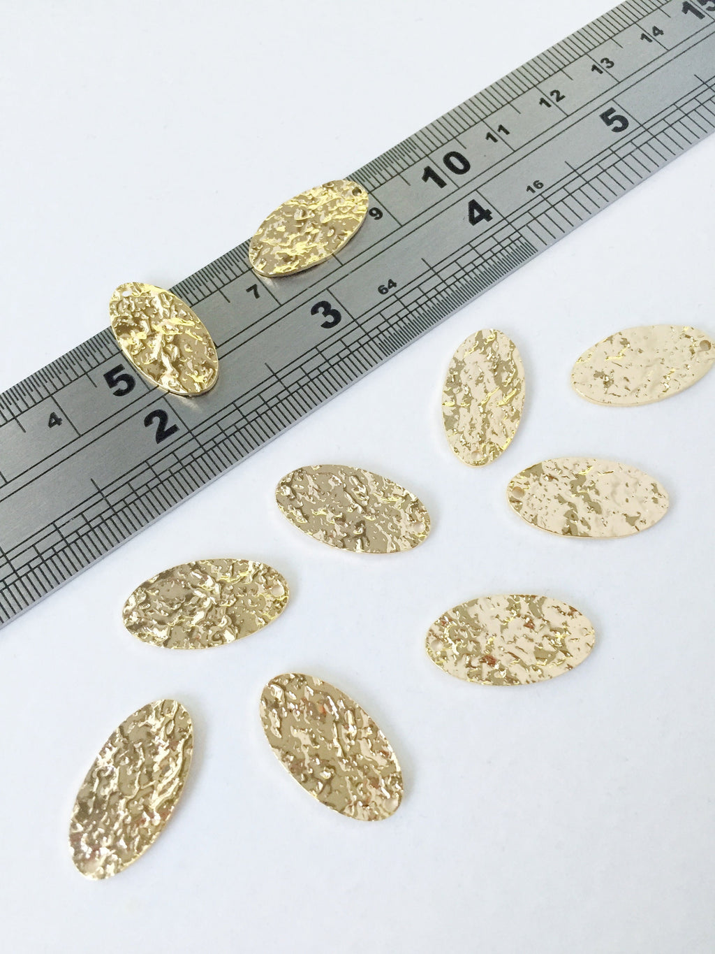 ✨ 18K gold plated hammered brass oval pendants