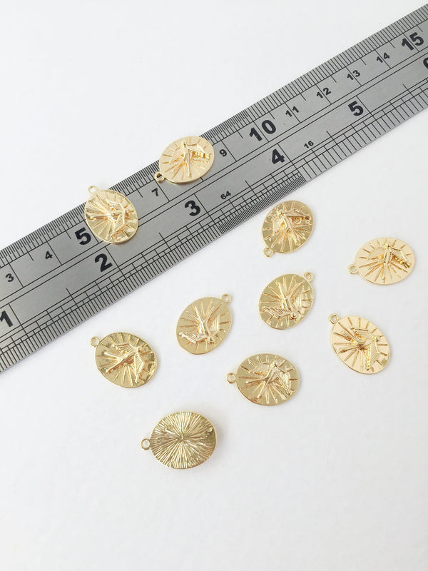 2 x 18K Gold Plated Hammered Oval Pendants, 19x10.5mm (0440)