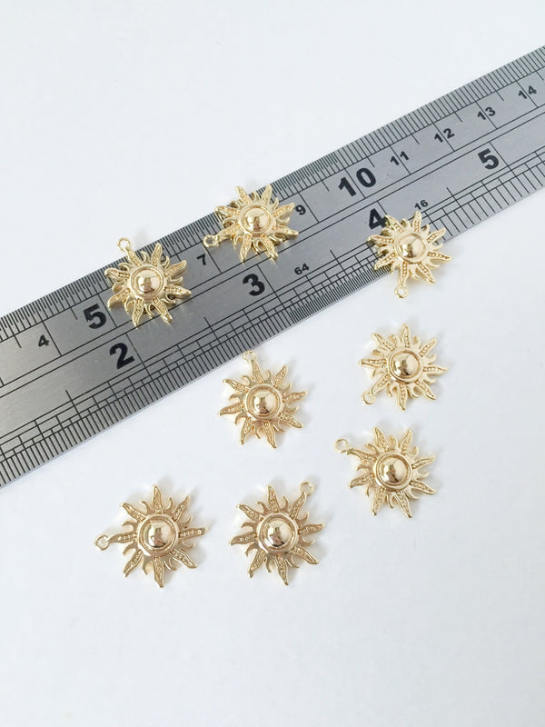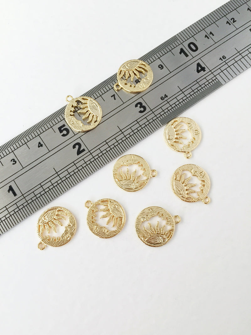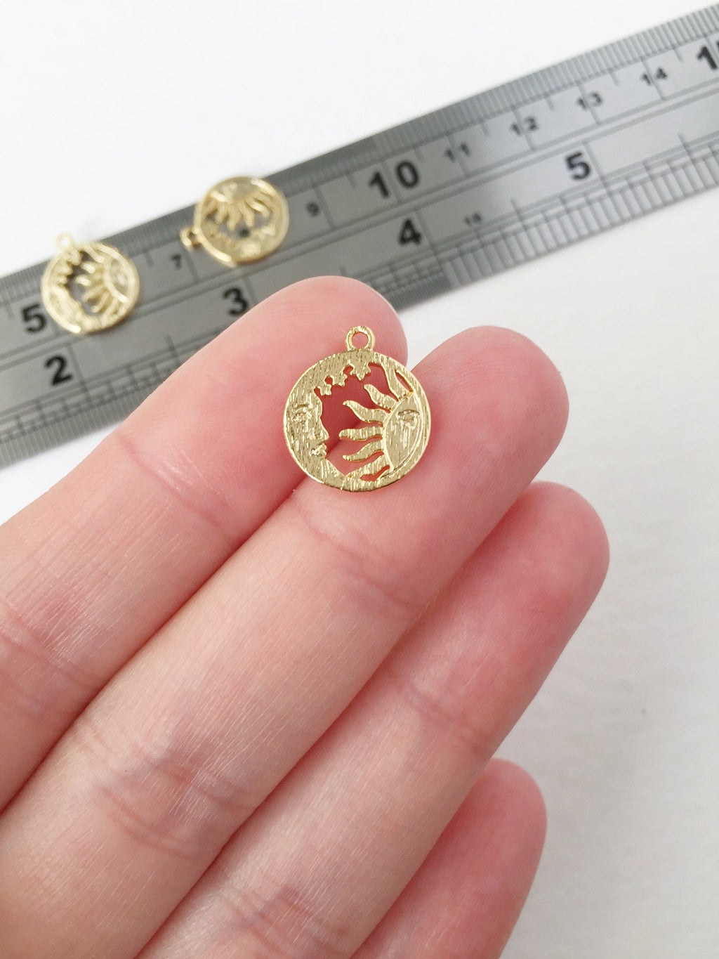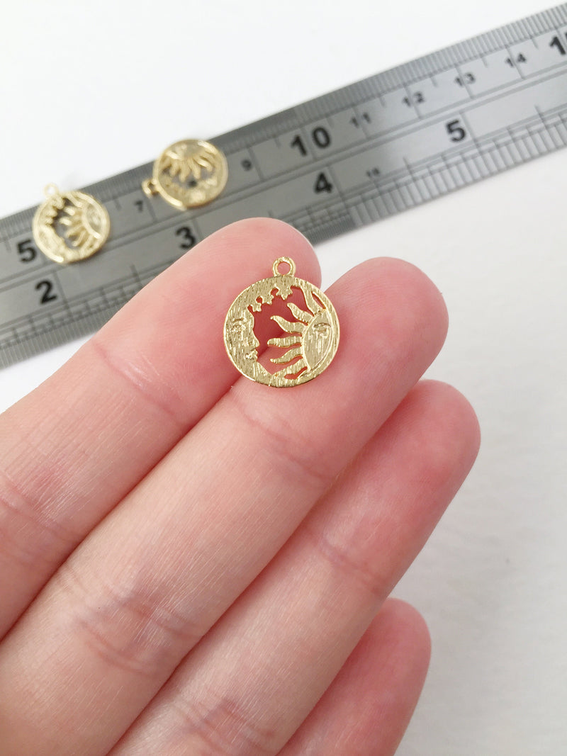 2 x 18K Gold Plated Sun and Moon Charms, 15x13mm (0101)