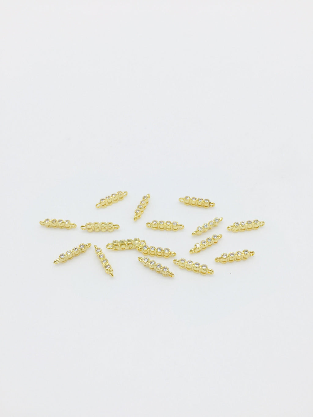 2 x Gold Plated Stick Links with Cubic Zirconia, 11x2mm (2711G)