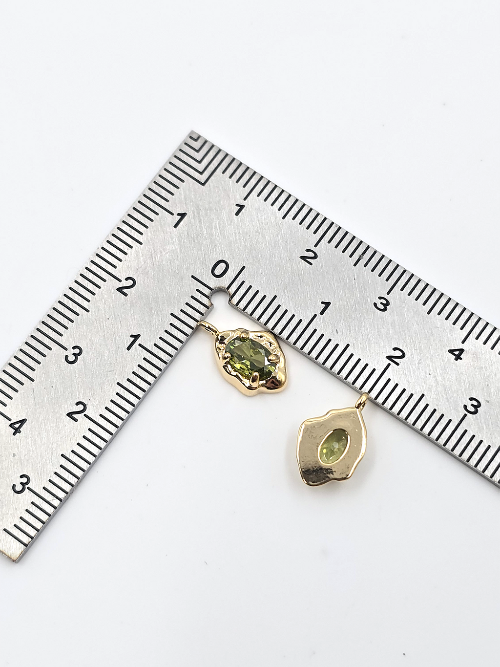 ✨Organic shaped peridot cubic zirconia charms, gold plated brass.