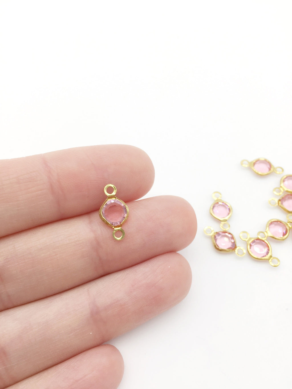 ✨ Light pink faceted glass connectors, bezel set in raw brass framing, with two loops