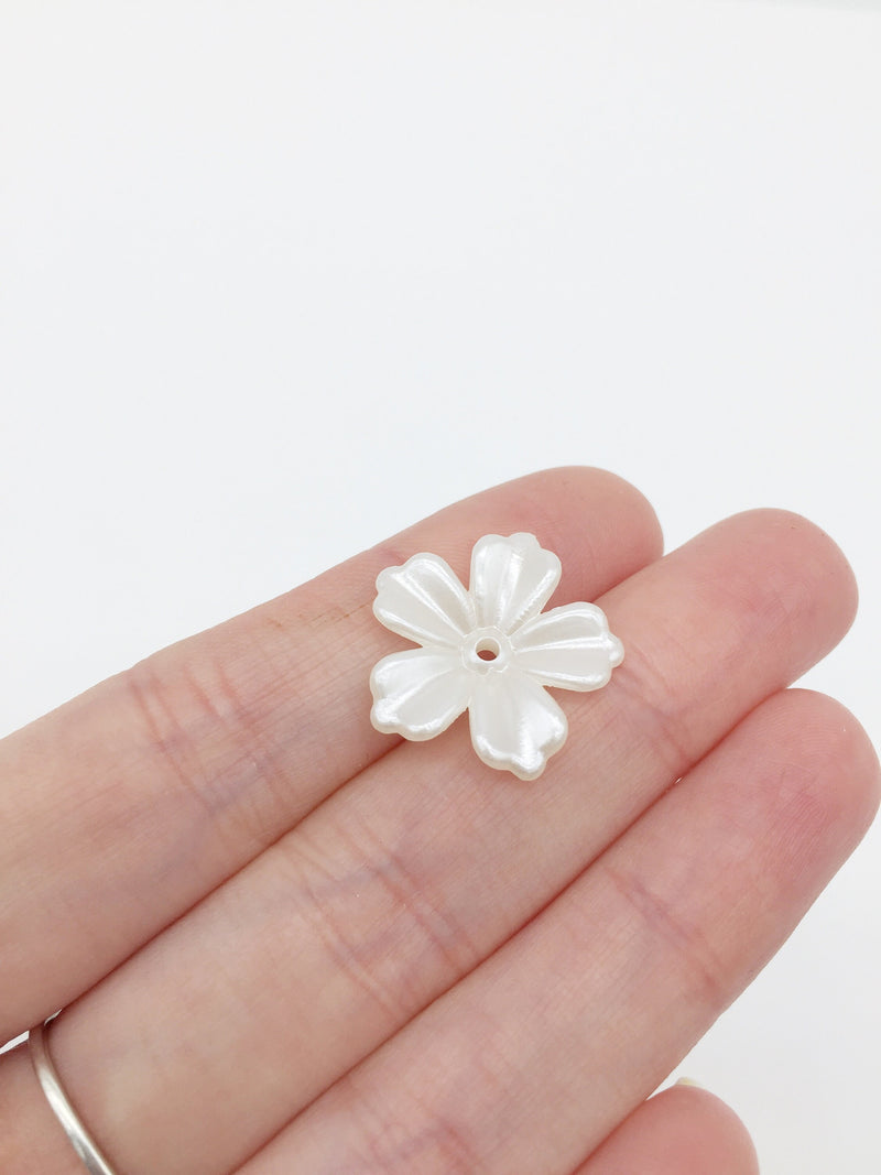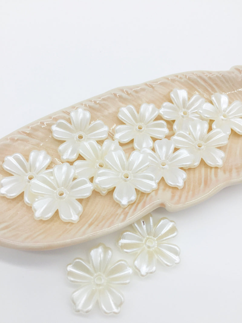 25 x Pearlised Ivory Flower Beads, 21mm (3075)