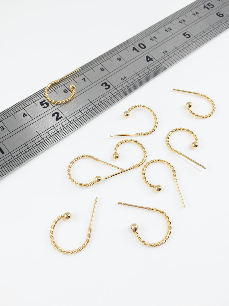 ✨ Gold plated stainless steel twisted hoop studs, supplied with silicone earring backs