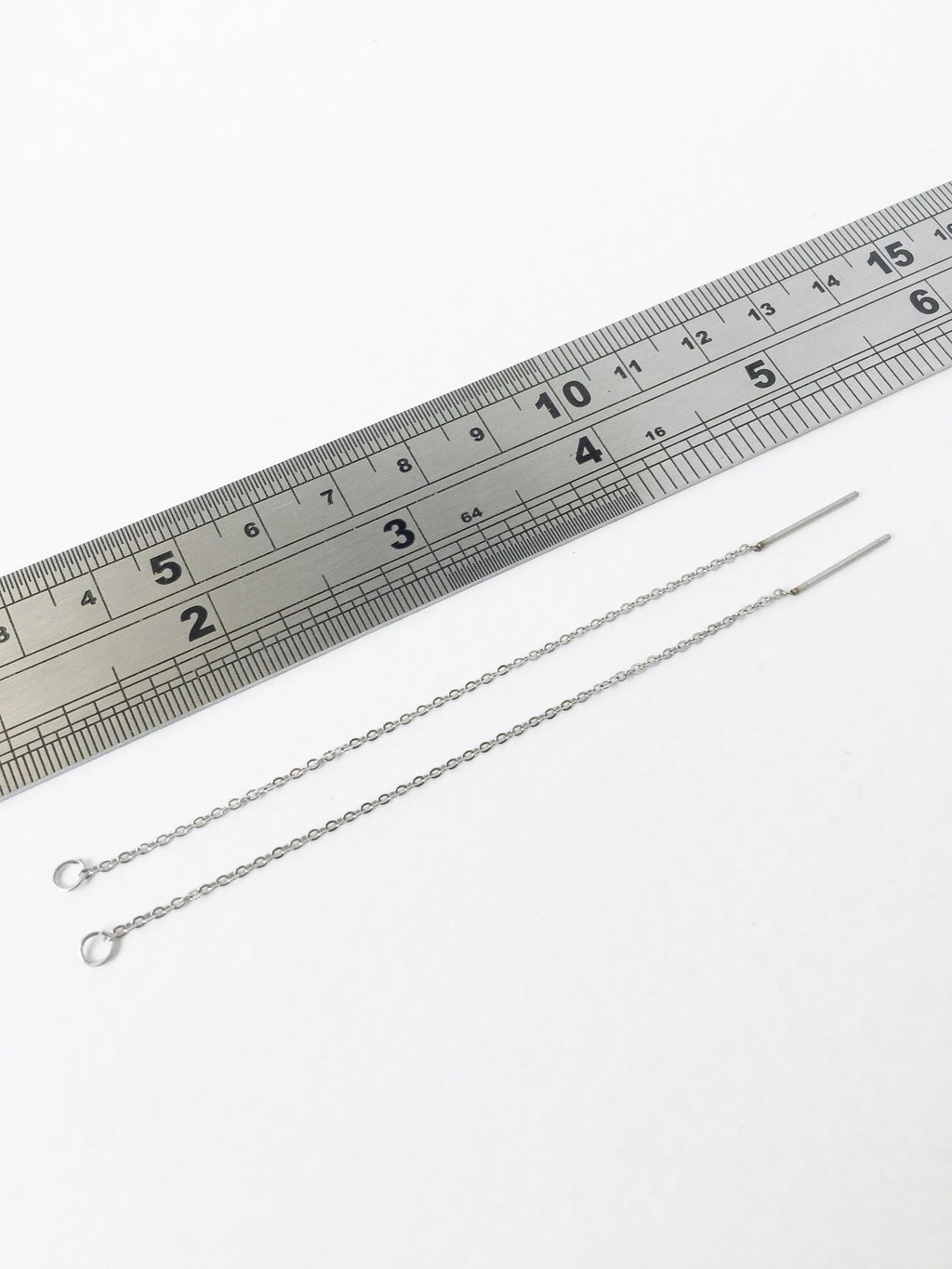 1 pair x Stainless Steel Chain Earring Stud Connectors, Steel Ear Threaders (1423)