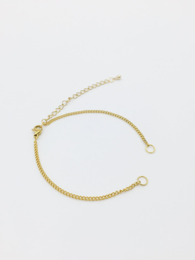✨ Gold stainless steel chain bracelet blanks, finished with a lobster clasp and extension chain