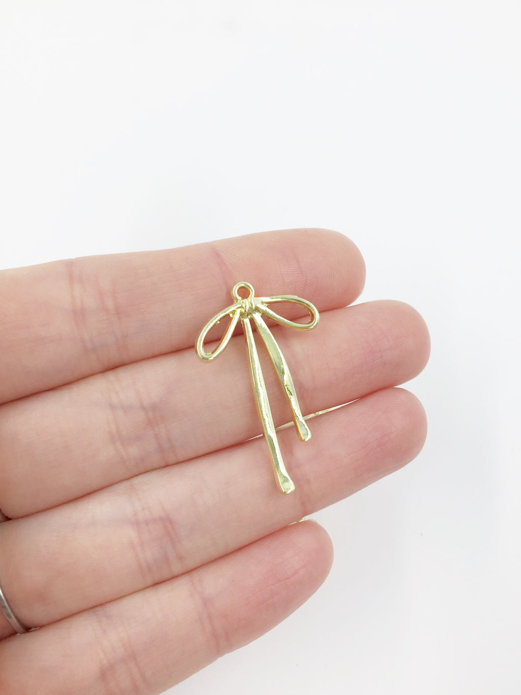 4 x Light Gold Bowknot Pendants, 33x20mm (1754)