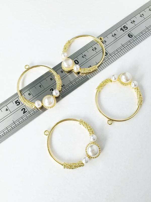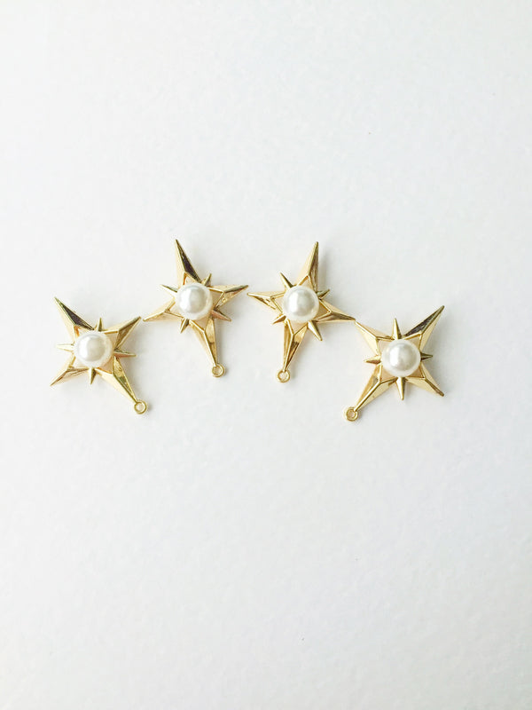 ✨ Light gold tone alloy bowknot pendants with faux pearl.
