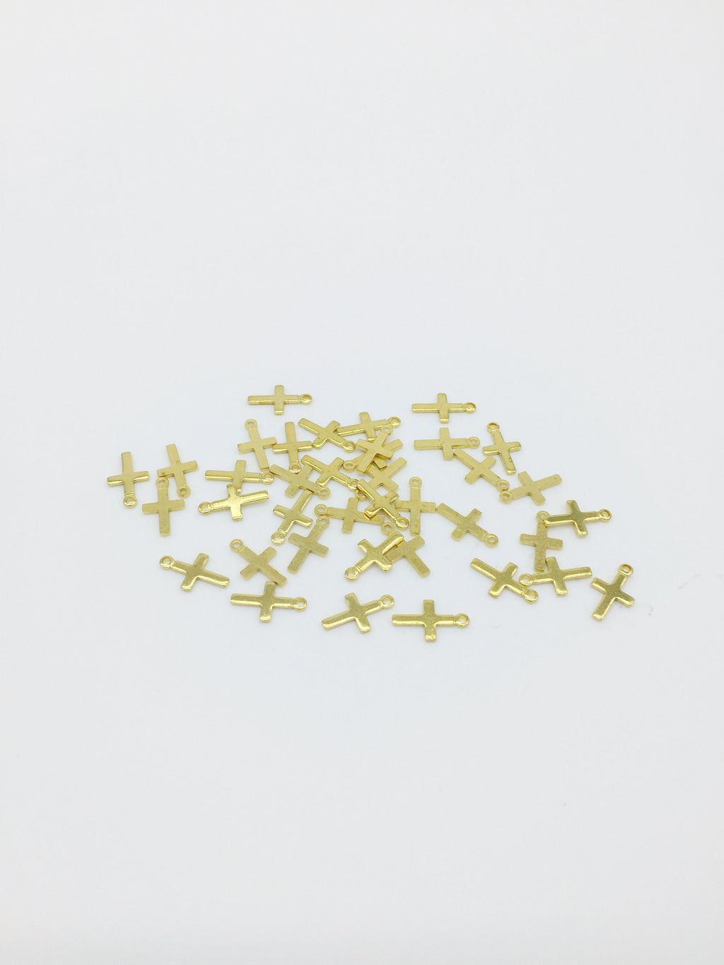 ✨ Tiny raw brass cross charms.
