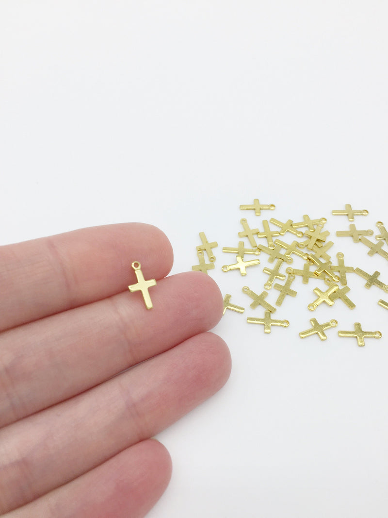 40 x Dainty Raw Brass Cross Charms, 10x6mm (0369)