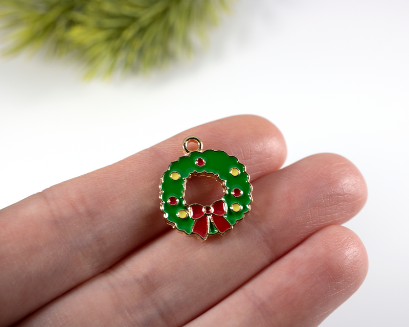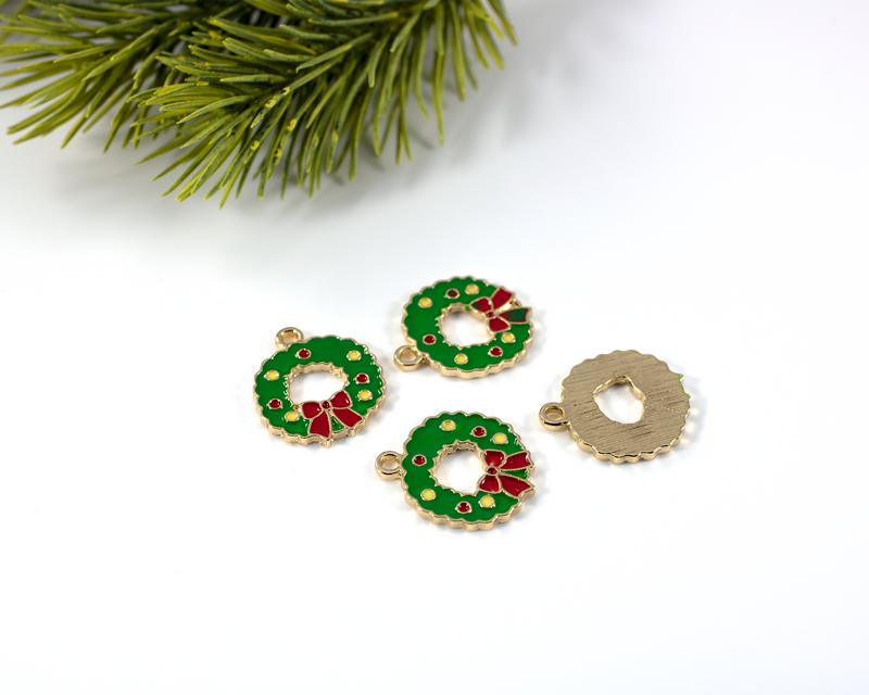 ✨ Enamel coated Christmas wreath charms, light gold plated