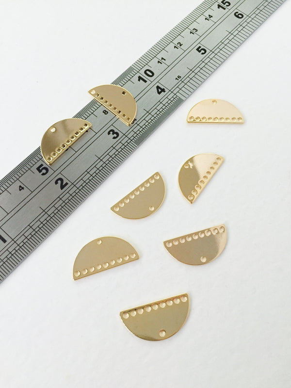 8 x Semi Circle Hammered Gold Connectors, 16x8mm (0033)