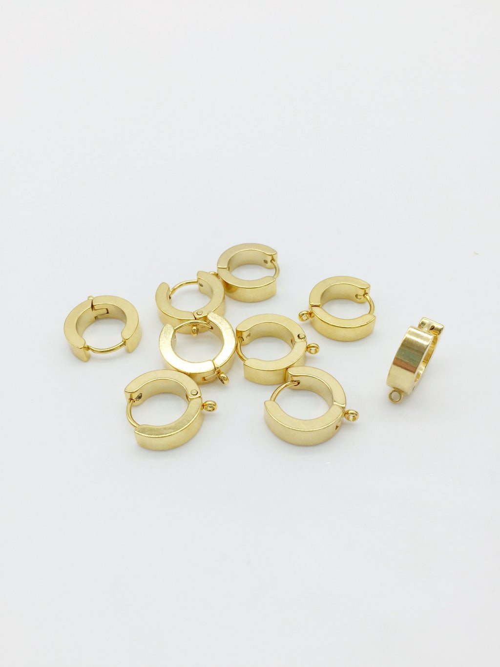 1 pair x Chunky 24K Gold Plated Stainless Steel Huggie Hoop Earring Blanks with Loop, 15x13mm (0245)