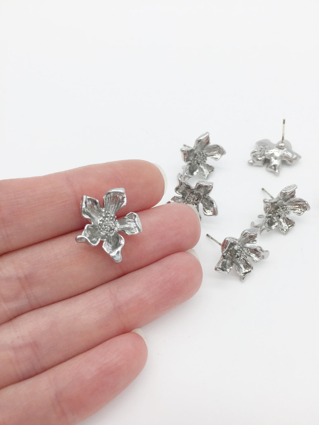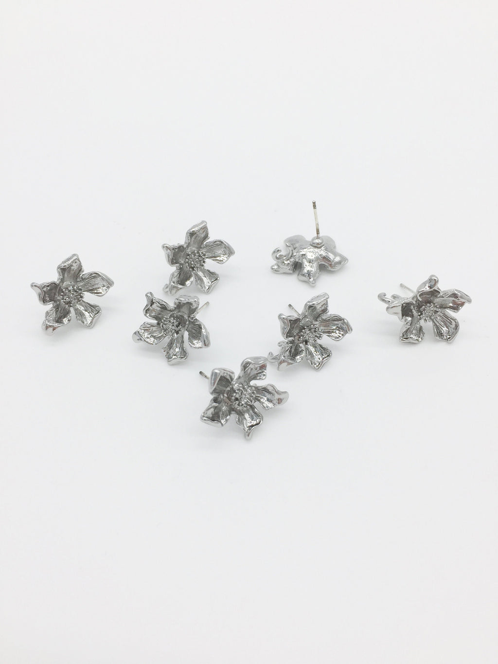 ✨ Flower earring studs with loop, made of rhodium plated alloy with 925 silver plated posts, supplied with silicone backs