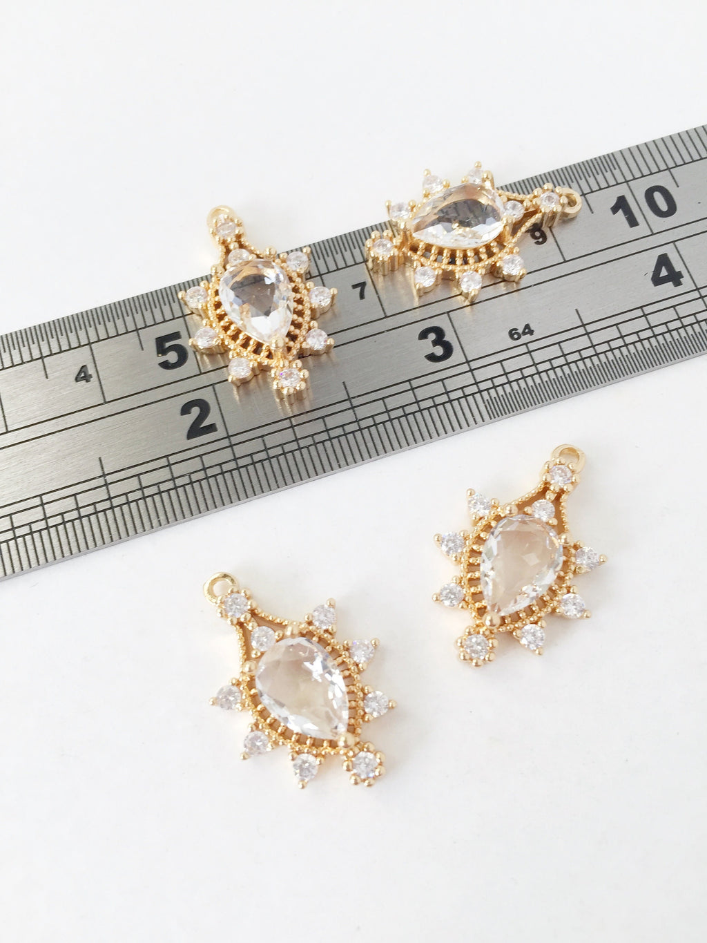 ✨ 24K gold plated pendant with faceted glass and cubic zirconia
