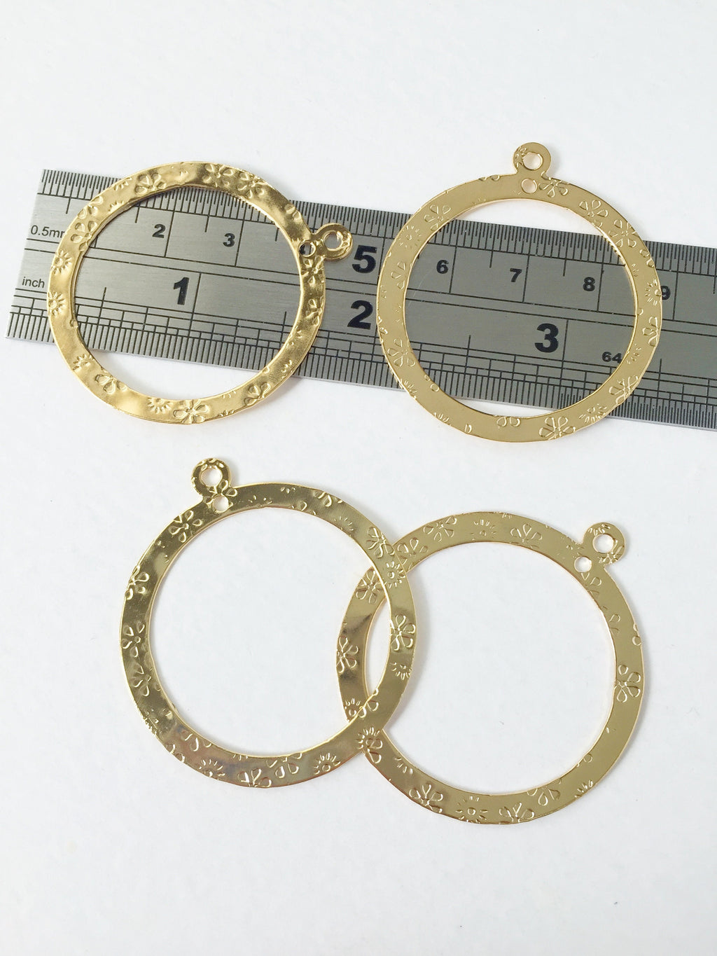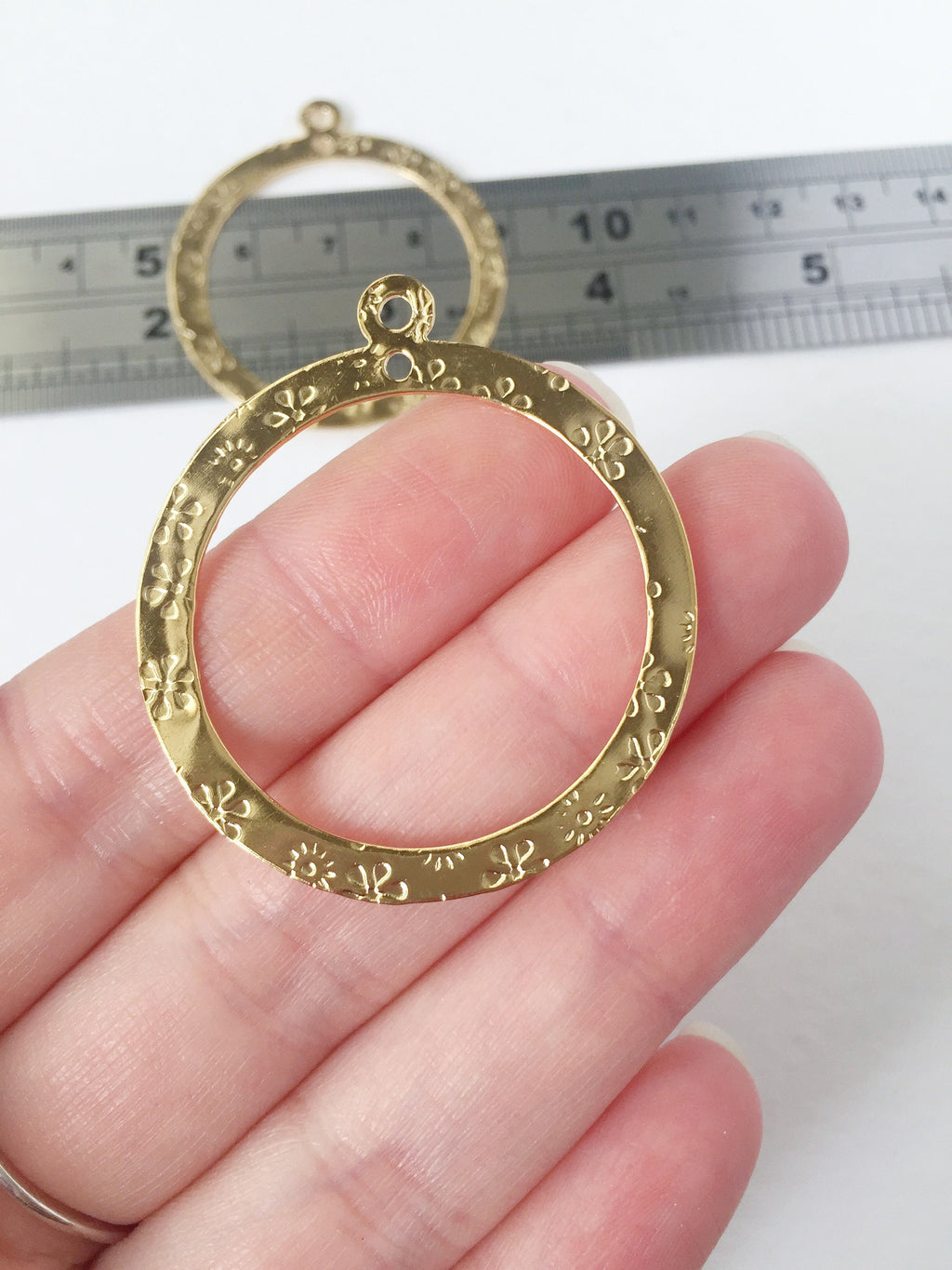 2 x Gold Plated Floral Hoop Textured Connectors, Stainless Steel Earring Hoops 44x38mm (0656)