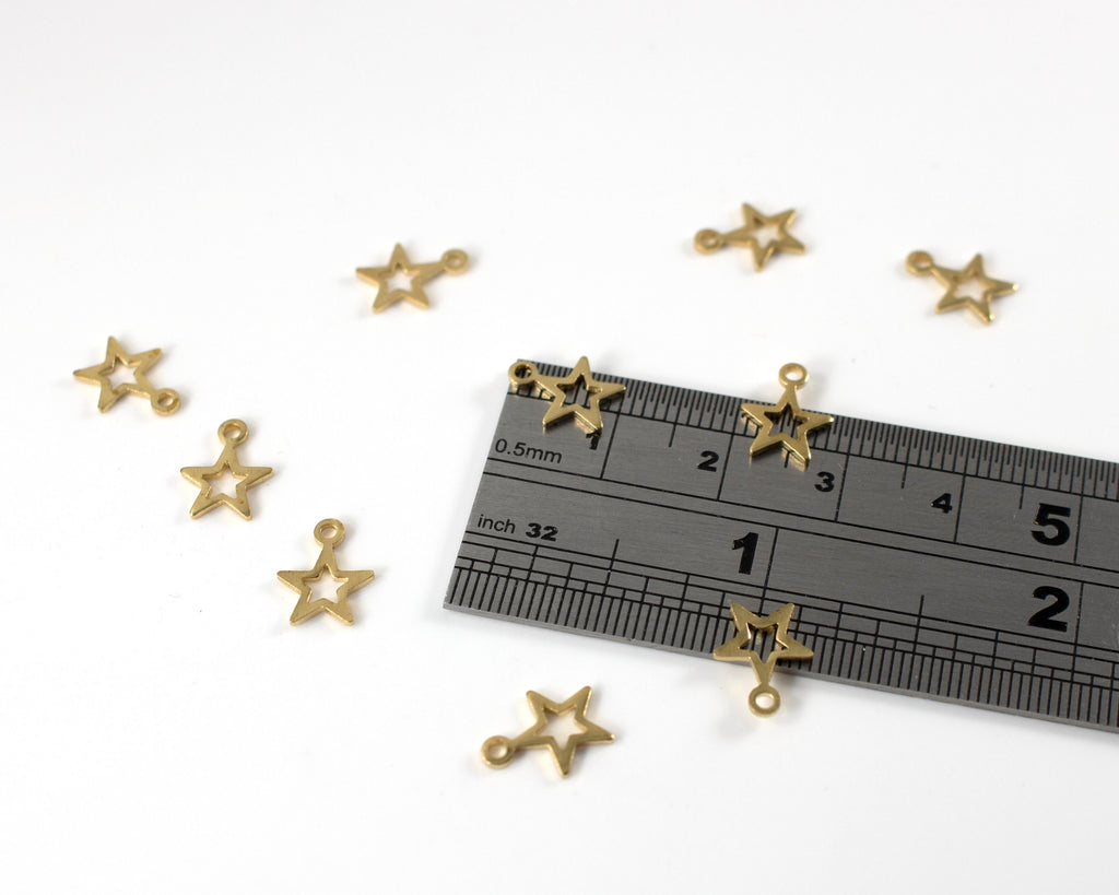 20 x Raw Brass Open Star Charms, 11x8mm (C0293)