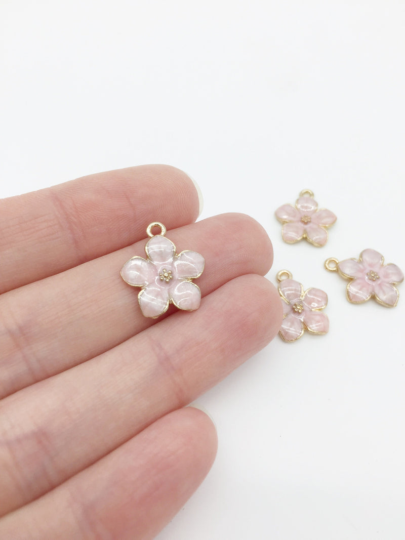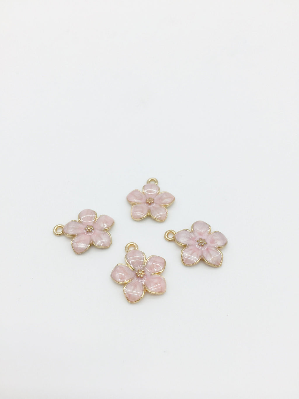 Pearl pink enamel flower charms, gold plated
