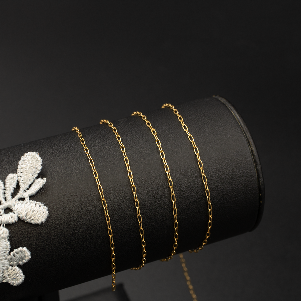 PVD gold plated stainless steel paperclip chain, waterproof and hypoallergenic, with soldered links, for permanent jewellery making.