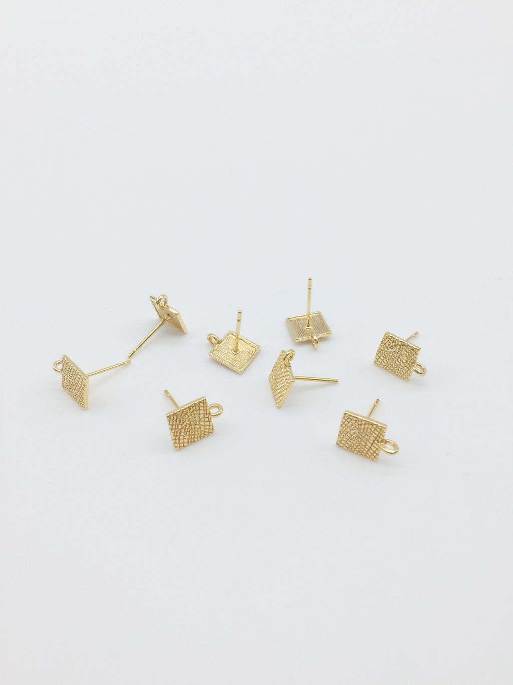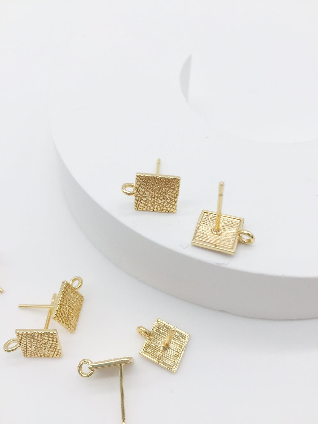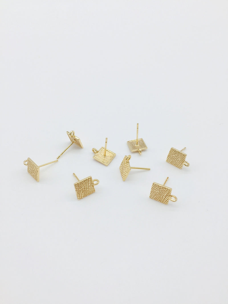 1 pair x 18K Gold Plated Textured Square Earring Posts with Loops (2731)