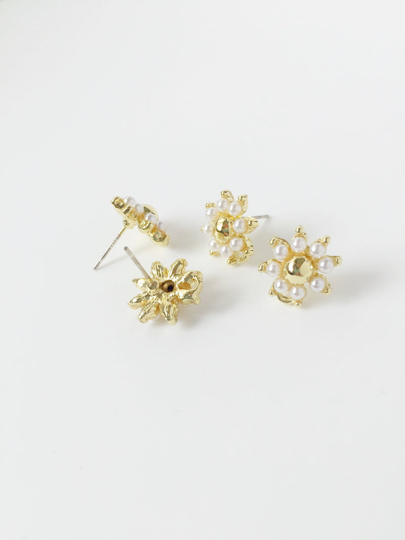 1 pair x Gold Plated Pearl Cluster Flower Earring Studs with Loops (1891)