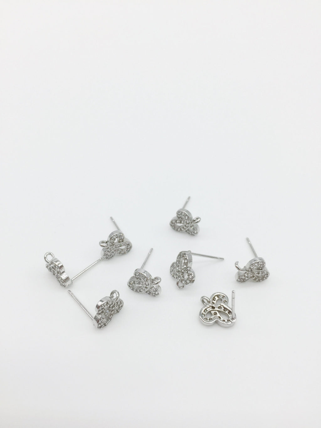 1 pair x Platinum Knot Micro Pave Cubic Zirconia Earring Posts, 9x8mm (0418)