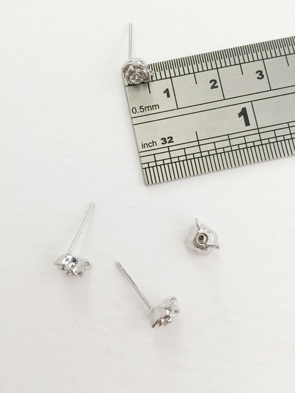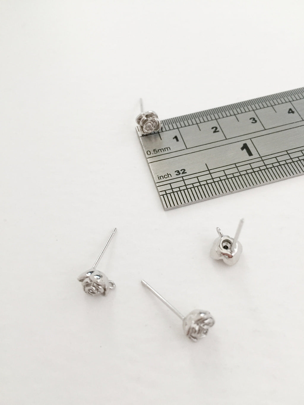✨ Real platinum plated brass earring studs with cubic zirconia centre, with a loop, supplied with silicone earring backs