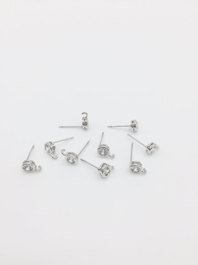 1 pair x Platinum Plated Round CZ Earring Studs, 5x11.5mm (0419)