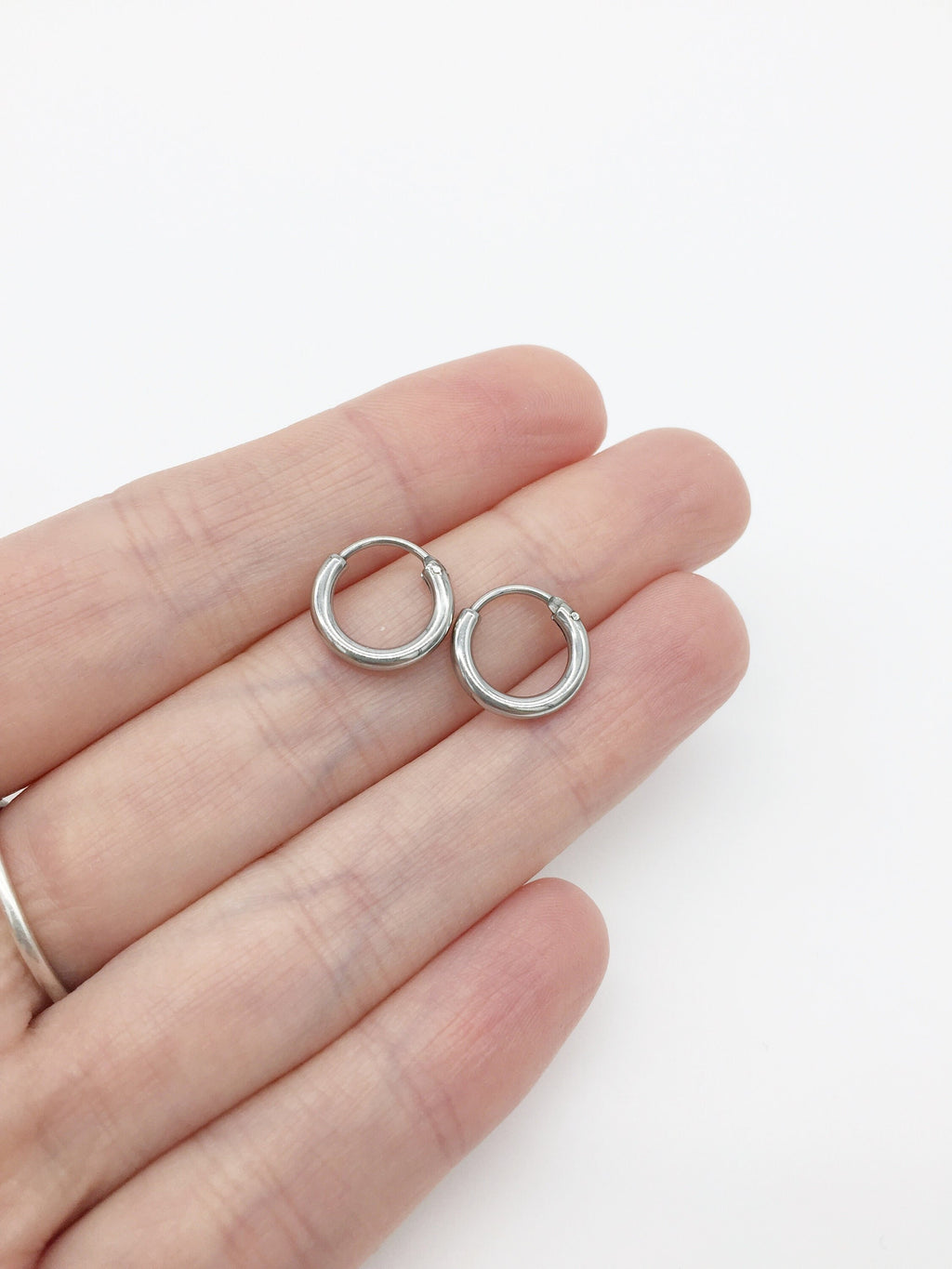1 pair x Stainless Steel Sleeper Earring Hoops, 12mm (3322)