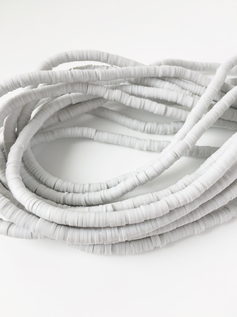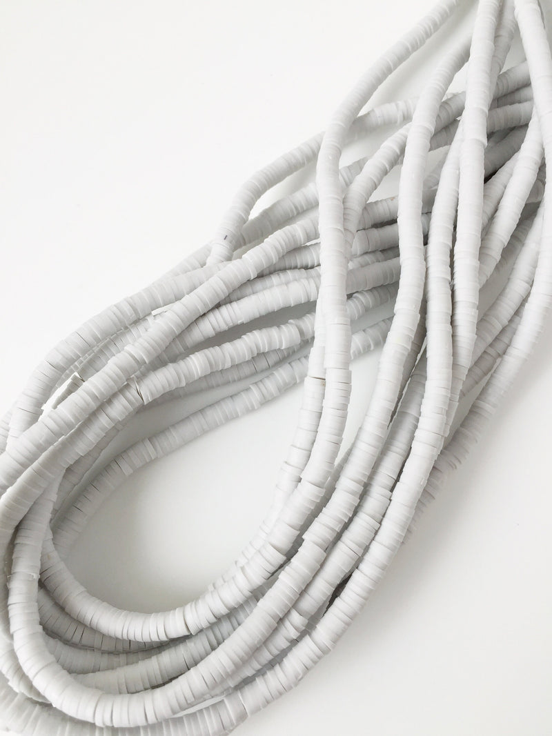 1 strand x 4mm Pastel Grey Polymer Clay Disc Beads, Vinyl Heishi Beads (1775)