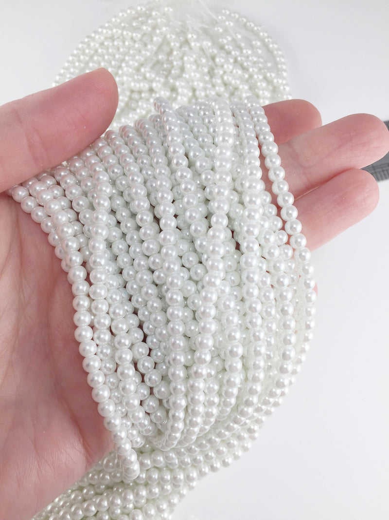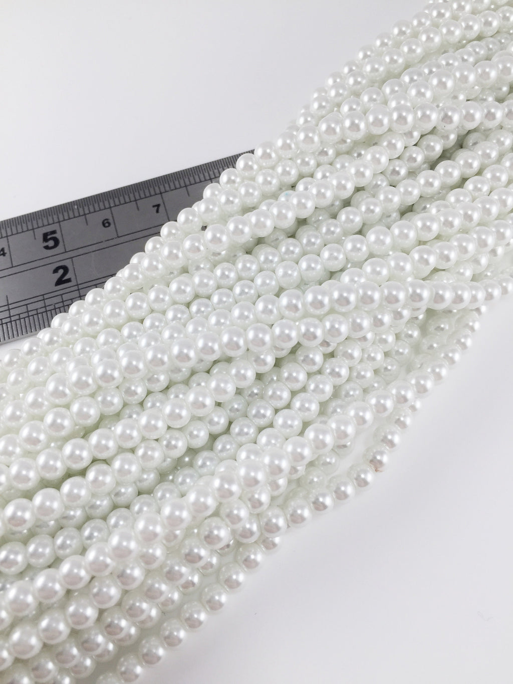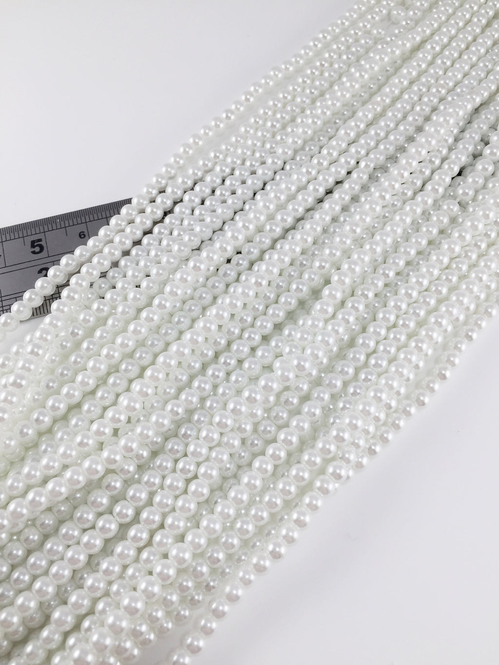 1 strand x 4mm Pure White Glass Pearl Beads (1876)