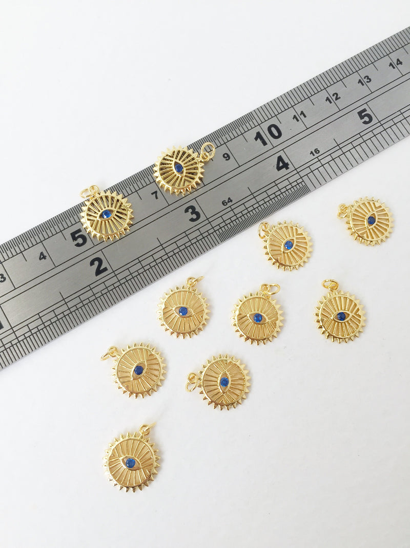 ✨ 18K gold plated brass evil eye pendant with blue cubic zirconia