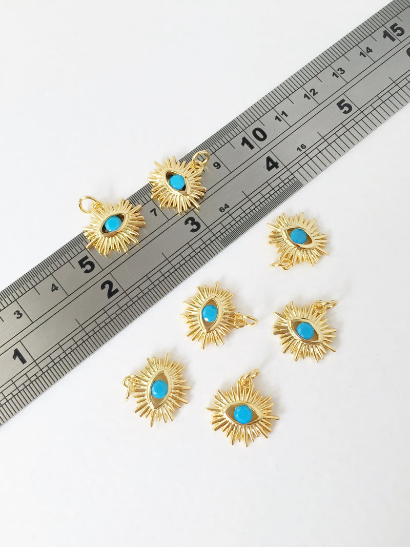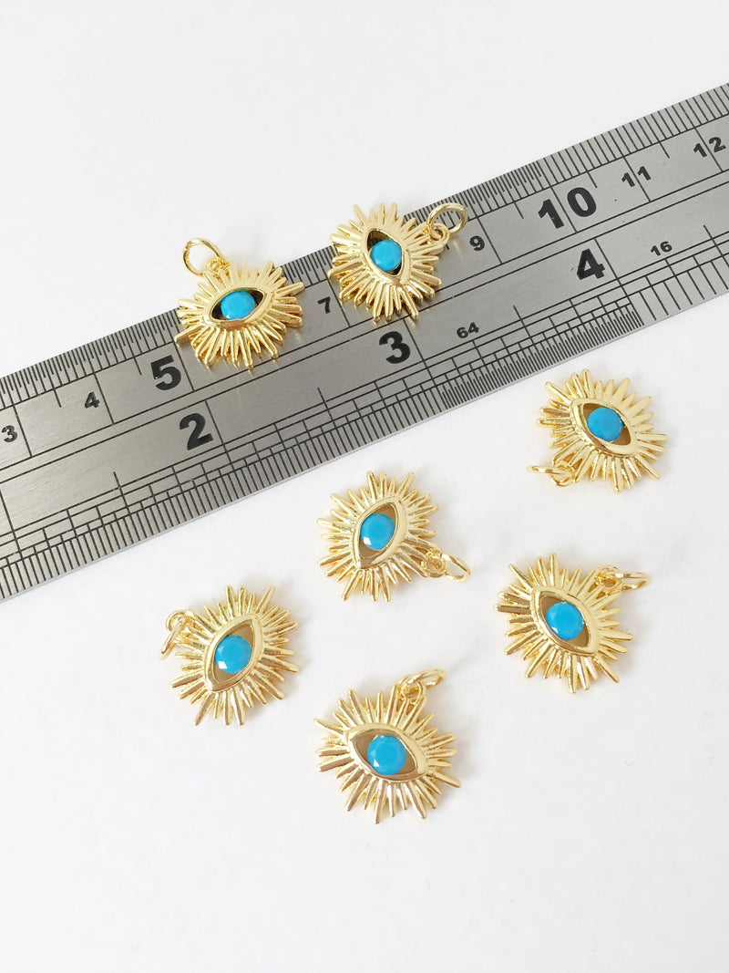 1 x 18K Gold Plated Evil Eye Sun Charm with Turquoise CZ, 16x17mm (1570)