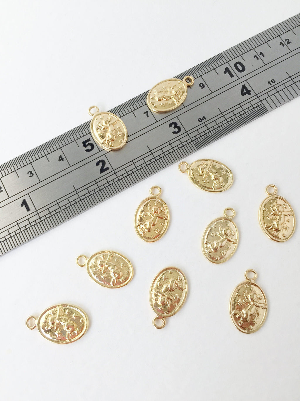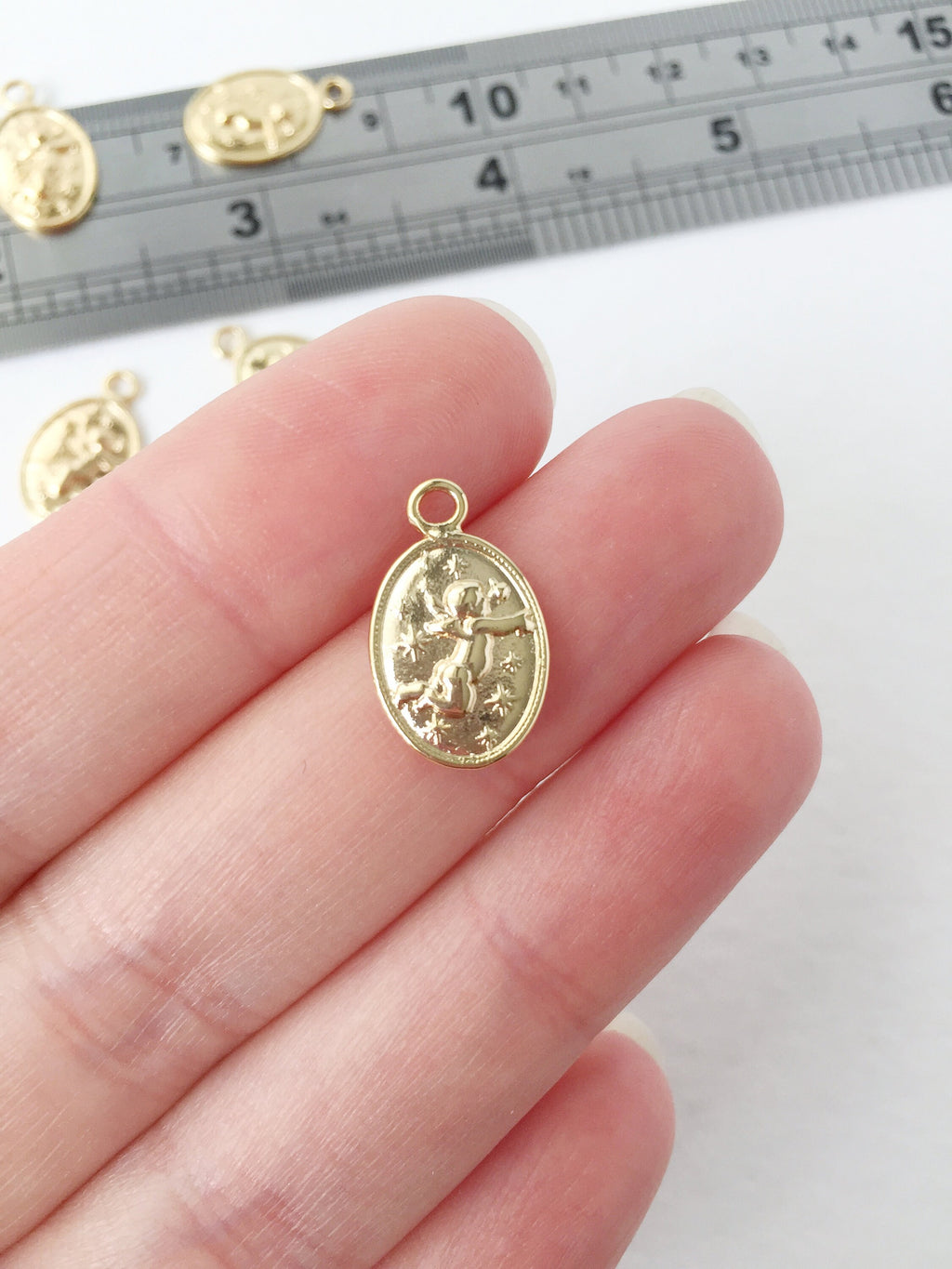 ✨ 18K gold plated brass cupid pendants, oval shaped