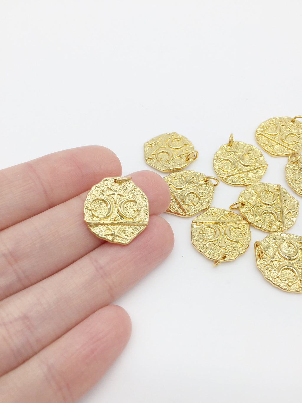 1 x 18K Gold Plated Textured Double Moon Pendant, 17x18.5mm