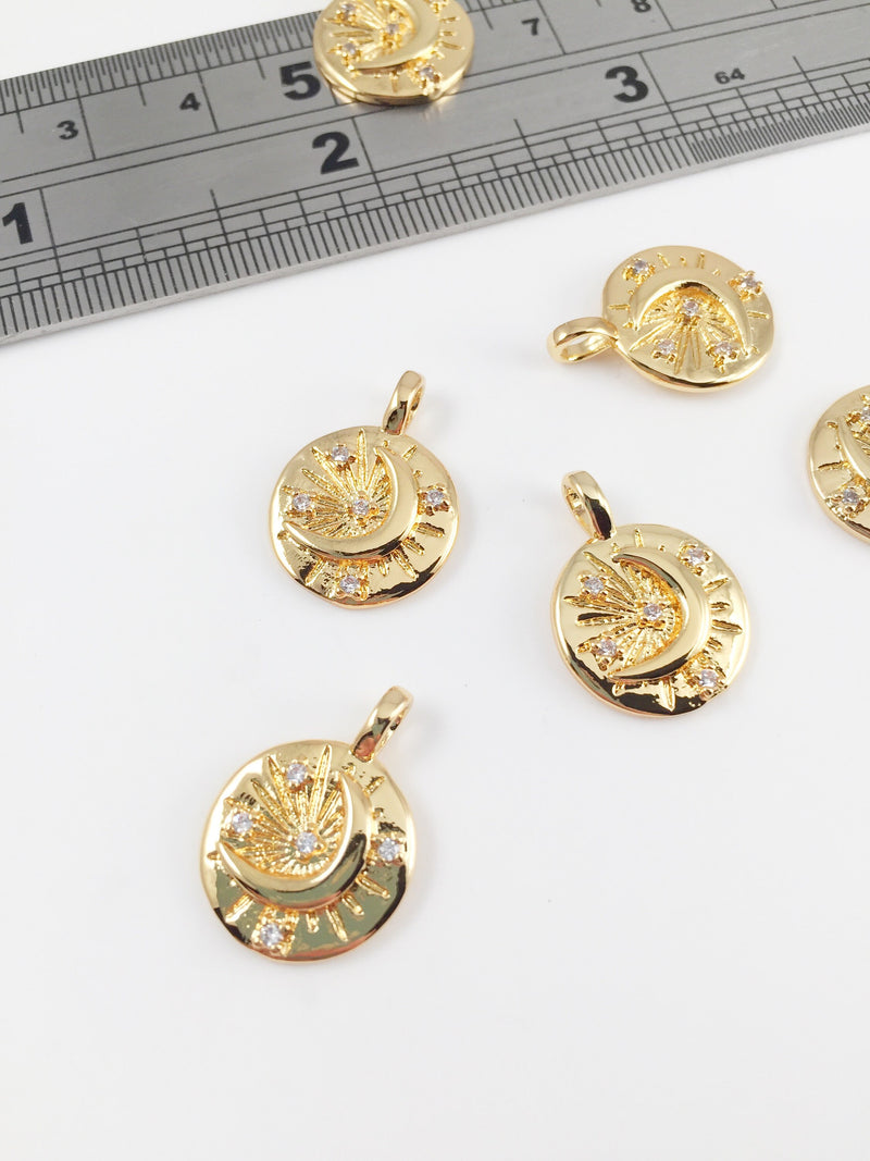 1 x 18K Gold Plated Sun and Moon Charms, 18x13.5mm