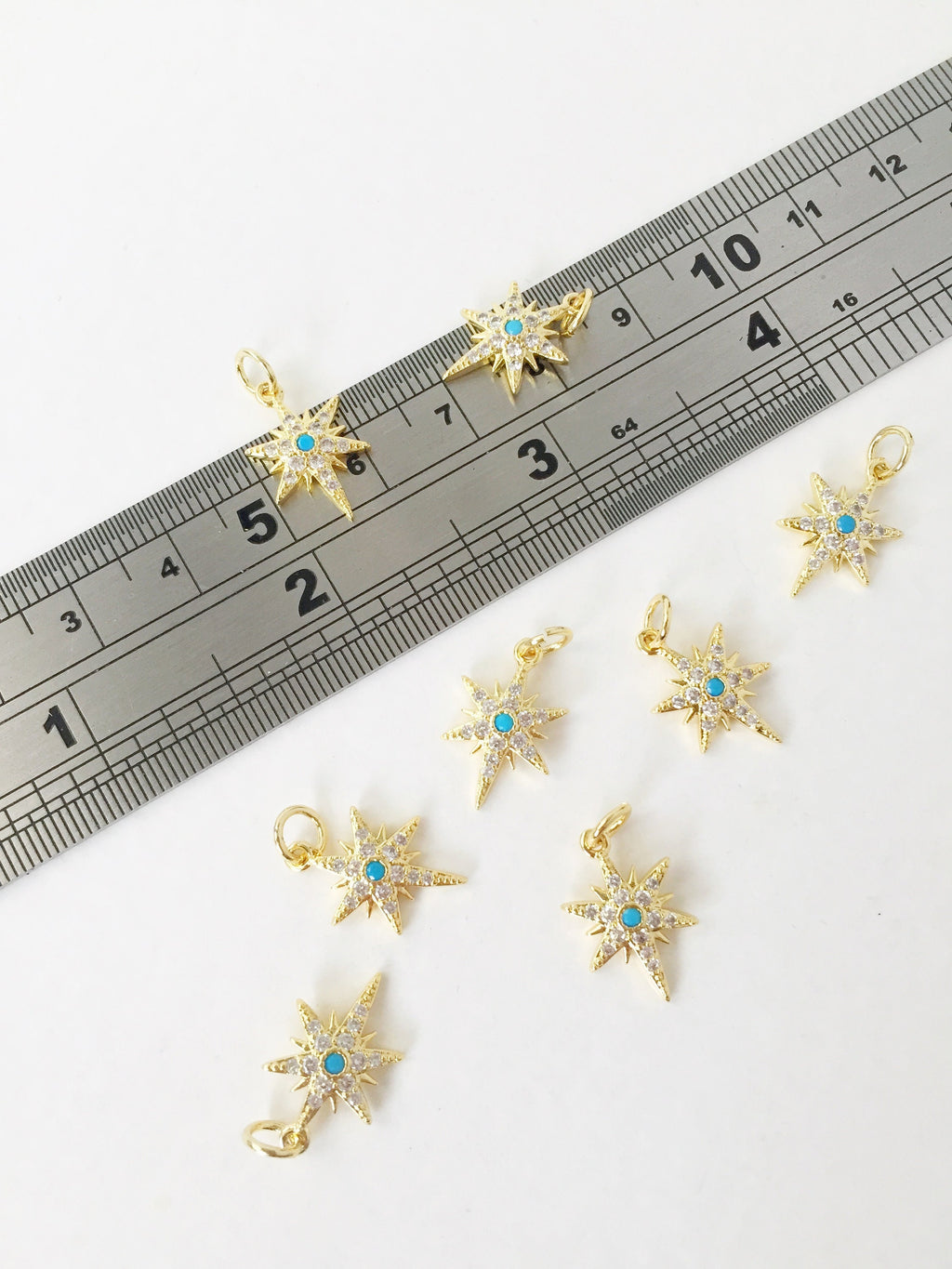 ✨ 18K gold plated brass star charms with cubic zirconia.