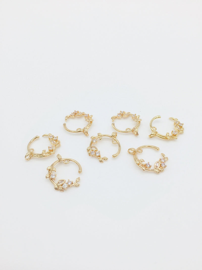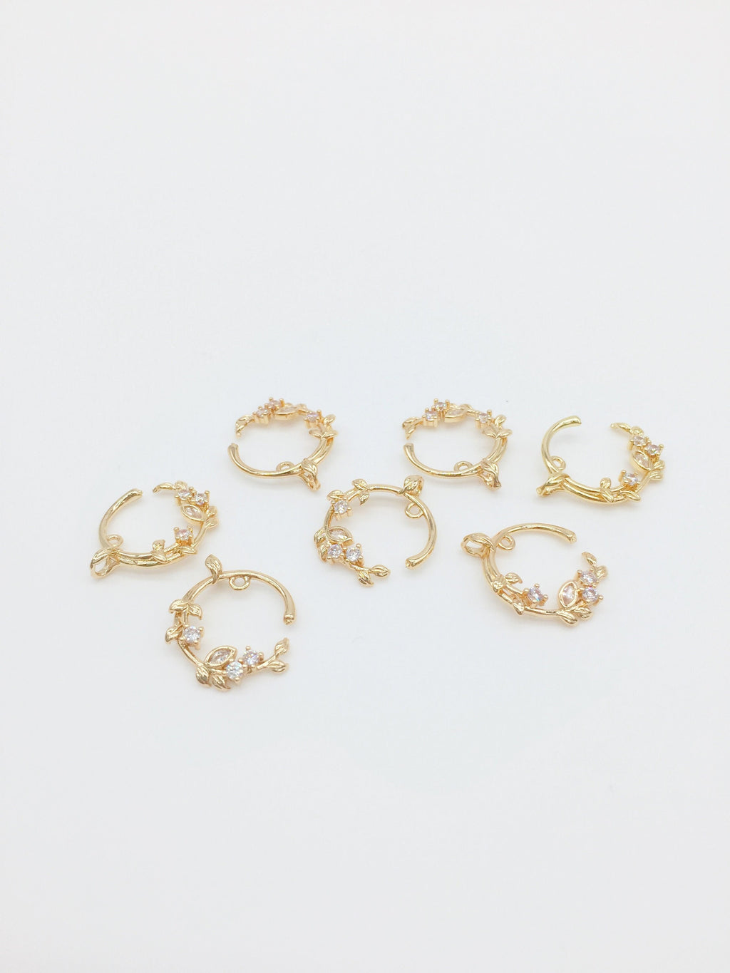 ✨ 24K gold plated leaf hoop charm/connector with cubic zirconia
